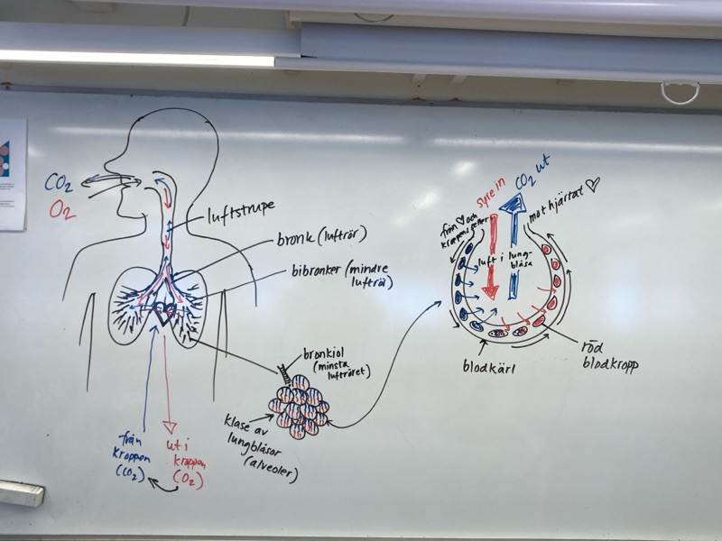 Vi gick igenom ett andetag i detalj, och tittade på filmen ”friska lungor och lungor med kol”.
